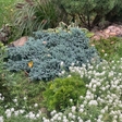 Ялівець (Juniperus squamata ‘Blue Star’) — це компактний, карликовий сорт з щільною, кулястою формою крони, що досягає висоти 30–50 см і ширини до 1 м. Хвоя має яскравий сріблясто-блакитний відтінок, який зберігається протягом усього року, створюючи ефектний контраст у ландшафті. Морозостійкість висока — витримує температури до -30°C, що робить його підходящим для більшості регіонів України. Віддає перевагу сонячним місцям і добре дренованим ґрунтам. Ялівець *Blue Star* ідеально підходить для альпінаріїв, рокаріїв, контейнерного озеленення та як декоративний елемент у садах.